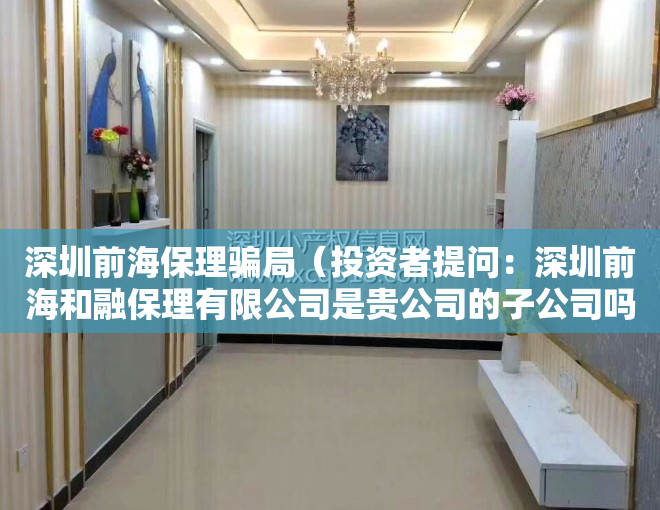 敬重的股权投资人,谢谢!深圳横琴和融融资租赁股份有限子公司(全称“横琴和融”)为子公司控股公司子公司控股公司子公司,横琴和融控股公司四川海波人文旅游产业股份有限子公司(全称“四川龙湖”),四川龙湖主要就资产为毕节倪晓颖凯悦饭店。感谢您对子公司的高度关注,欢迎您日常生活融洽!